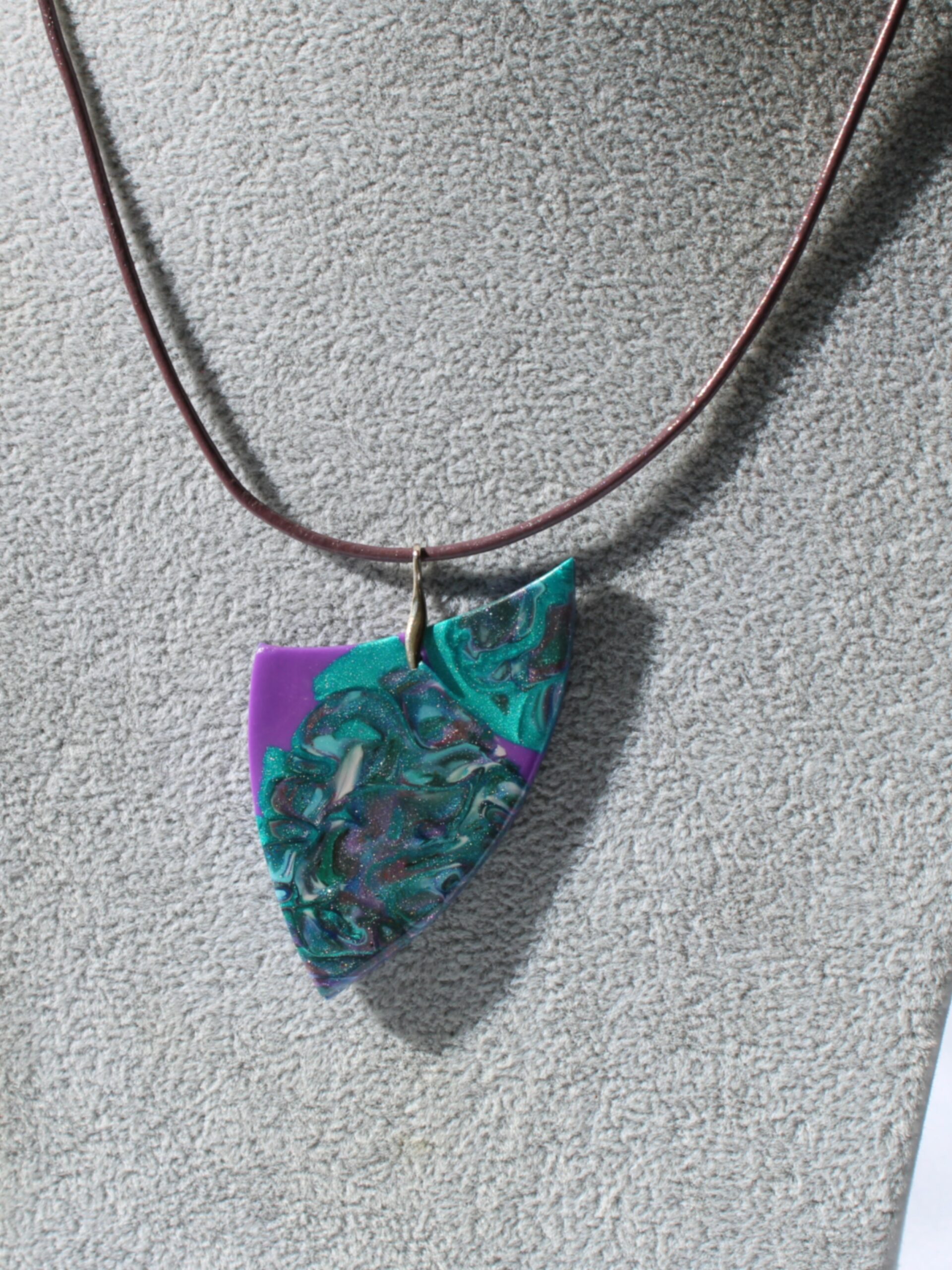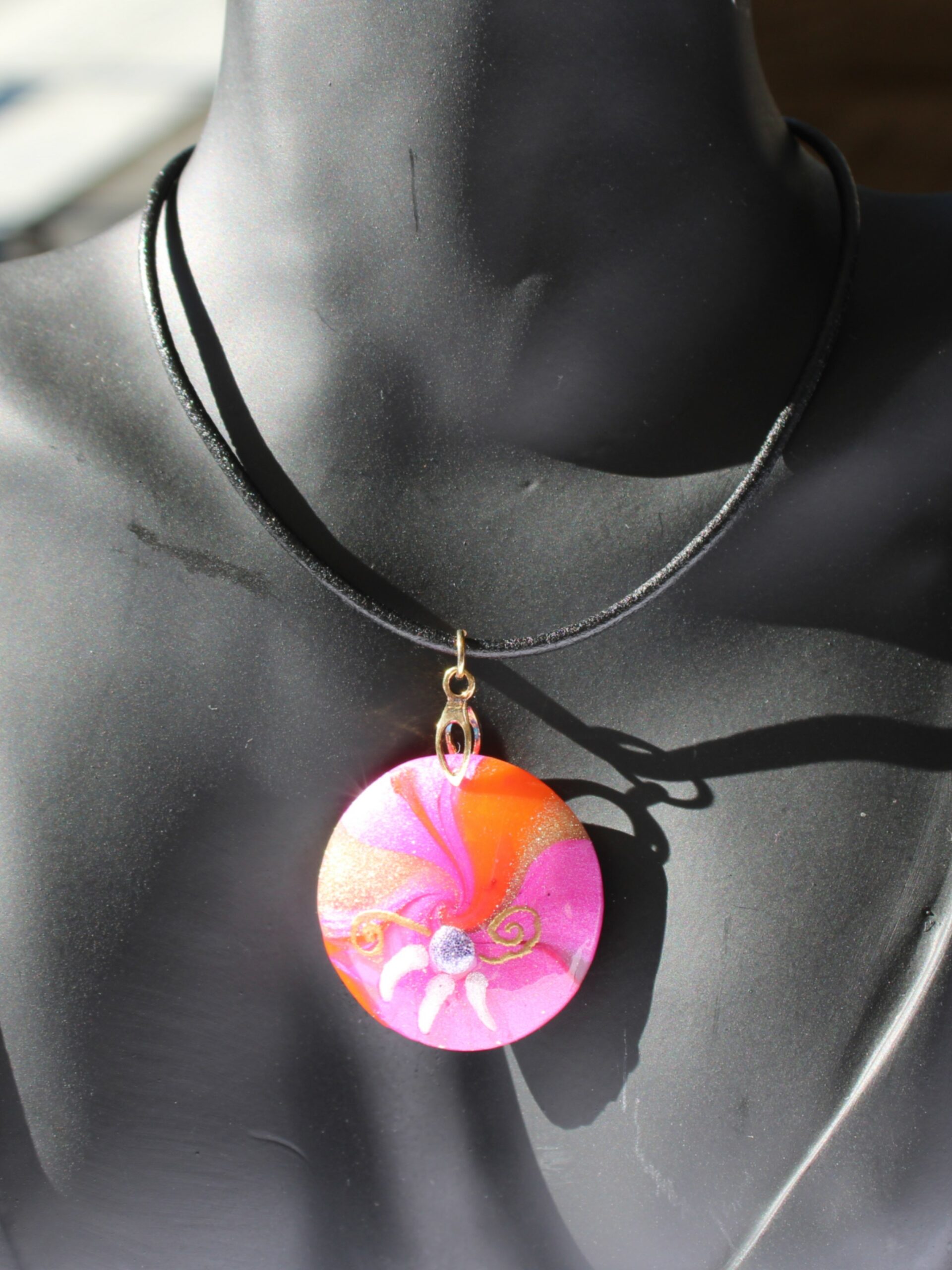 Matières: pâte polymère translucent, mica, résine