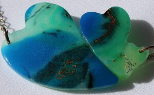 Matières: pâte polymère translucent, mica, résine