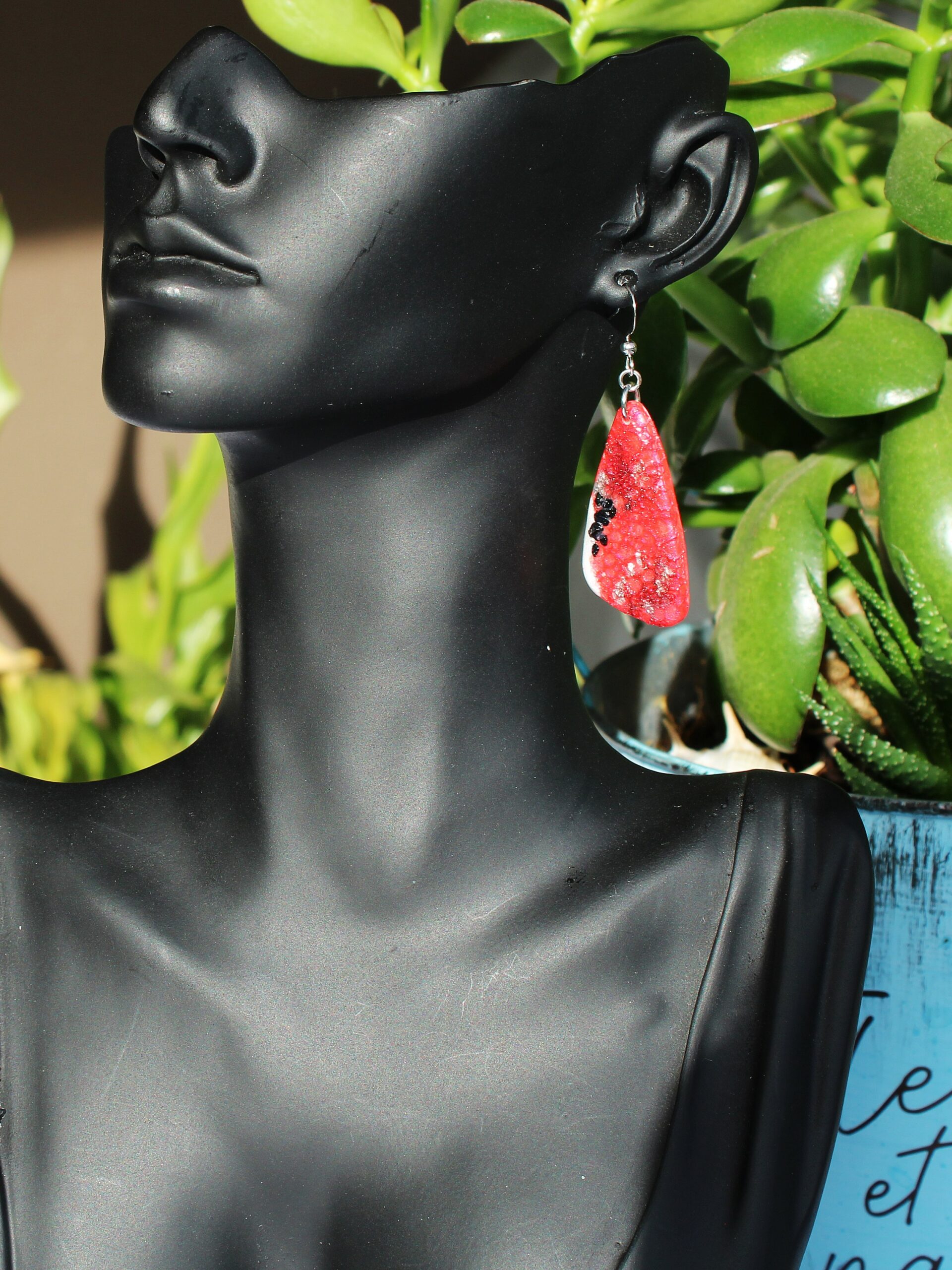 Particularité: .Chaque paire est une pièce unique, faite main, conçue avec soin à partir de pâte polymère et de résine, pour un rendu à la fois léger, moderne et artistique.
