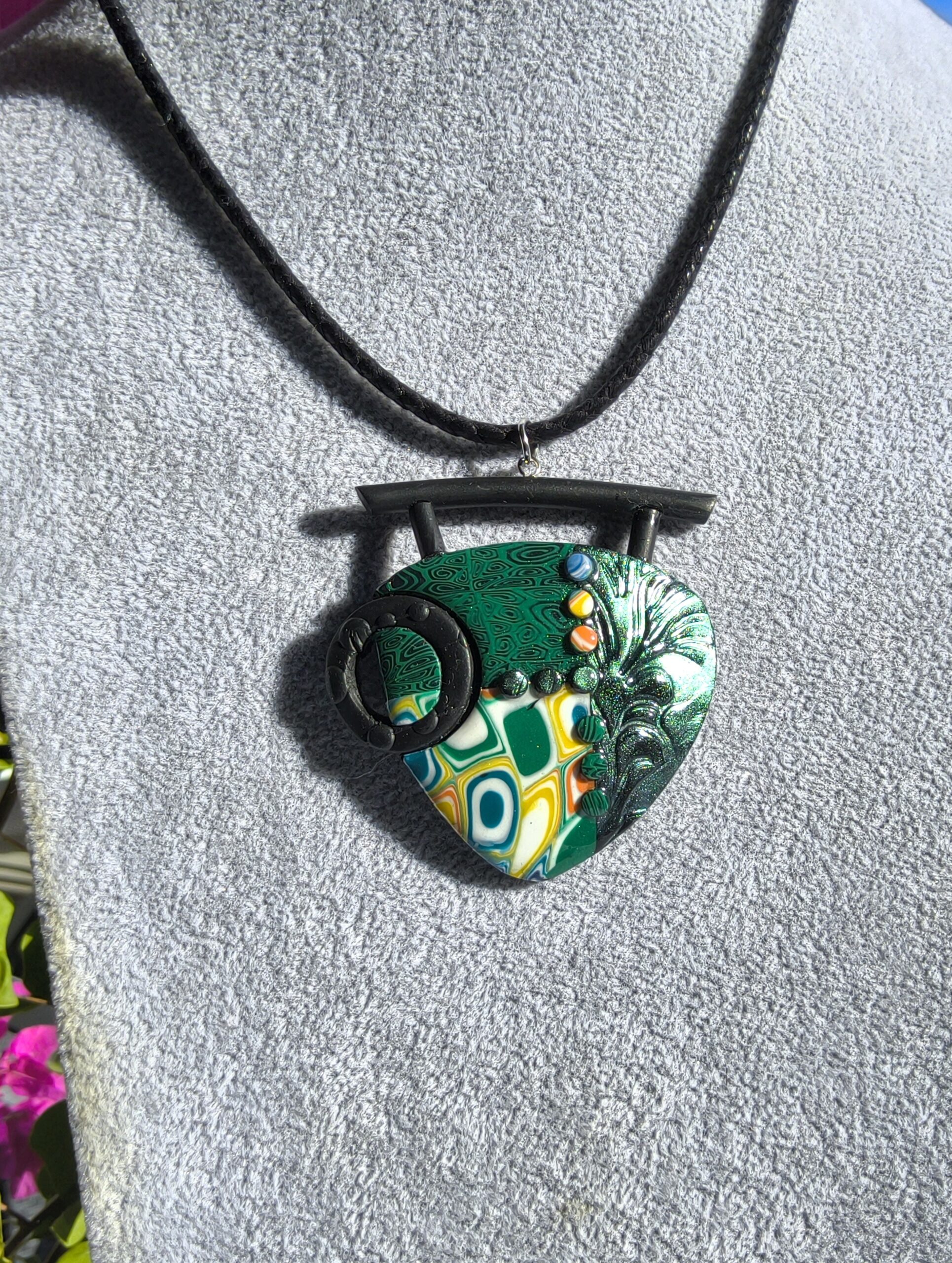 Dimensions: le cordon en coton avec l’attache fait environ 48cm.Le bijou depuis son attache fait environ 6,5cm de haut ,la largeur est de 5,5cm.