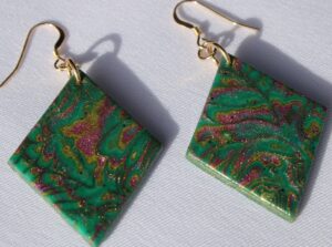 Matières: Pâte polymère, mica, résine