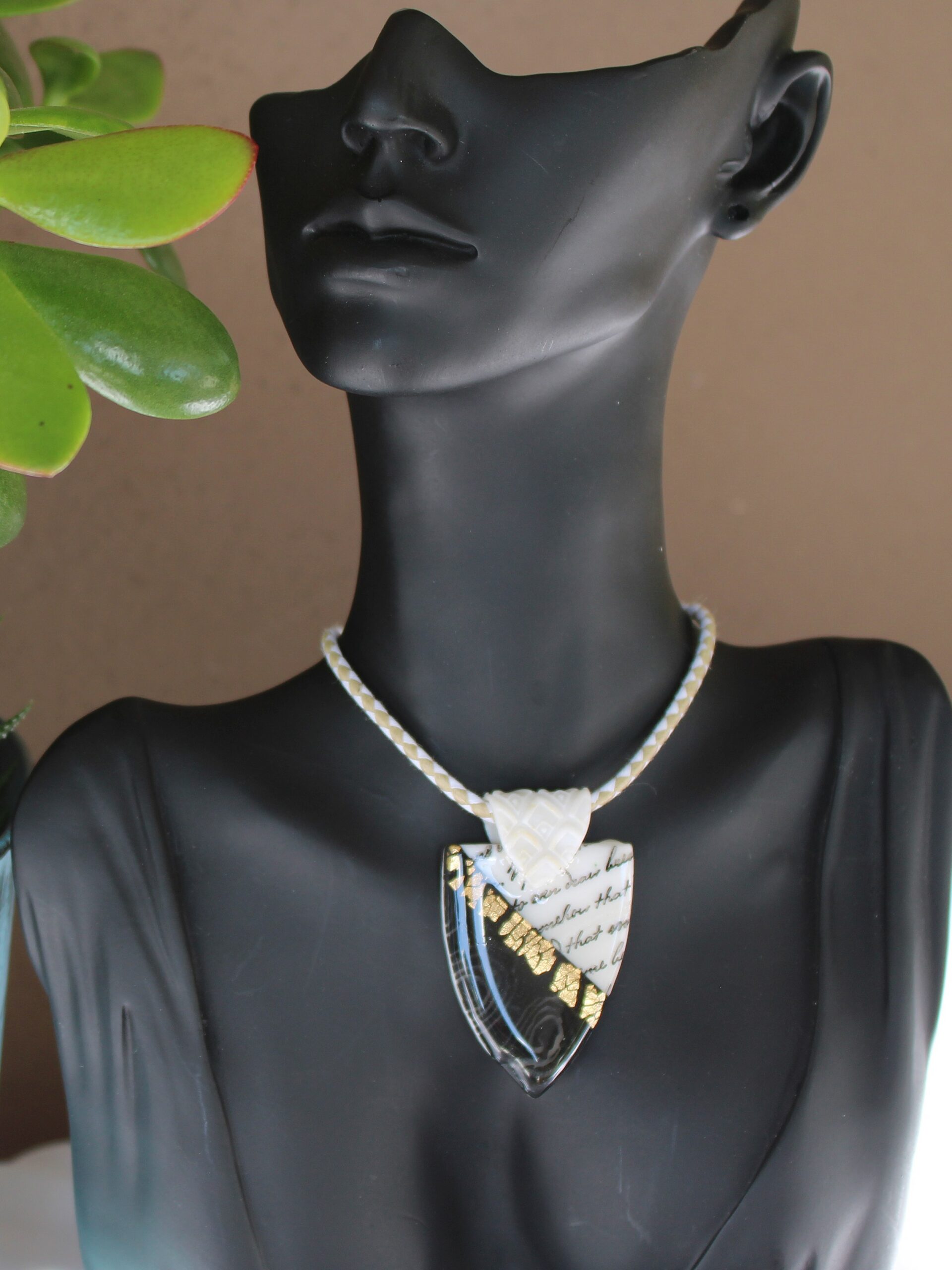 Dimensions: la longueur du cordon caoutchouc noir mesure 51cm , la hauteur du bijou est de 6cm sa largeur 5,4cm.La hauteur totale du bijou avec les pampilles 16,2cm environ